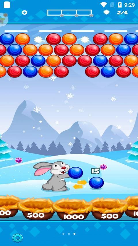 2、想尽一切的办法来将上面的泡泡给全部消除掉,这样我们才能获得更加高的分数。