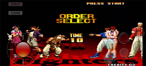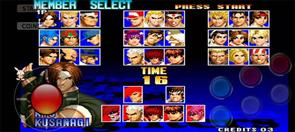 1、首先下载拳皇97风云再起手机版,投币确认开始游戏,选择我们喜欢的英雄。